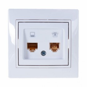 Розетка Lezard Мира компьютерная+телефон белый с белой вставкой 10шт 701-0202-143