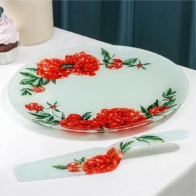 Тортовница Доляна с лопаткой Пионы блюдо 30х2см лопатка 26.5х7х2см 5252280