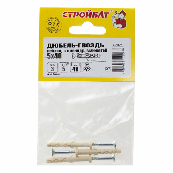 Дюбель-гвоздь Стройбат нейлон цил манж 5x40 3шт