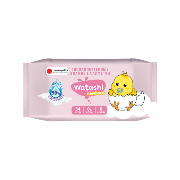 Салфетки влажные WATASHI д/детей 0+ big-pack 54шт /16