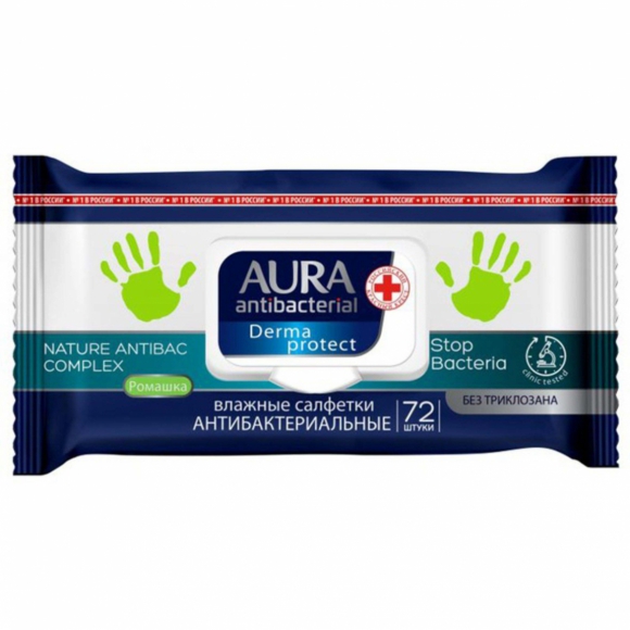 Салфетки влаж Aura Beauty антибакт 72шт /12
