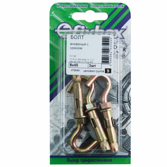 Болт анкерный с крюком цинк 8x45 3 шт