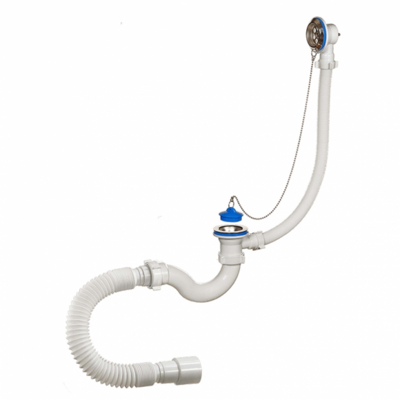 Сифон ОРИО для ванны с пластиковой решеткой D-70мм, с переливом и гибкой трубой 40-40/50 1 1/2 х 40