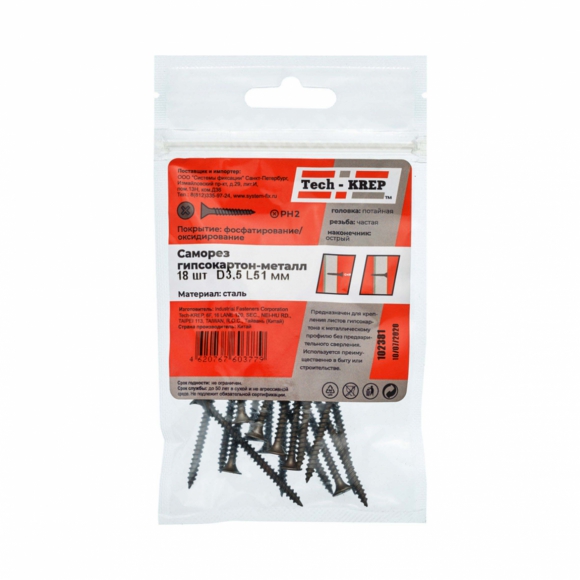 Саморезы Tech-Krep гипс-мет 4.2х65 11шт пакет