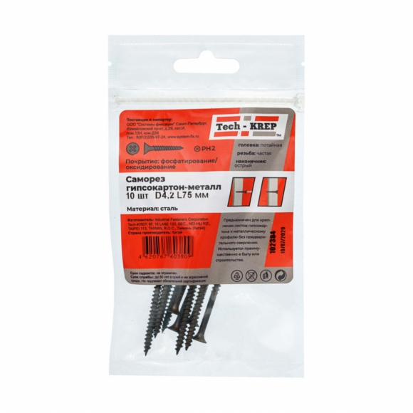 Саморезы гипсокартон металл фосфатирован 4,2x90 6 шт