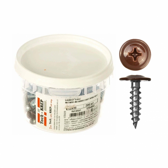 Саморезы Tech-Krep мет-мет 4.2х16 темно-красный 200шт ведро мал