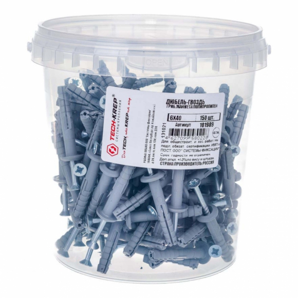 Дюбель-гвоздь Tech-Krep 6х40 гриб манжета полипропилен черный 50шт кор с окошком