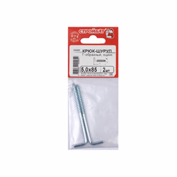 Крюк Г-образный 5,0x85 белый цинк 2 шт