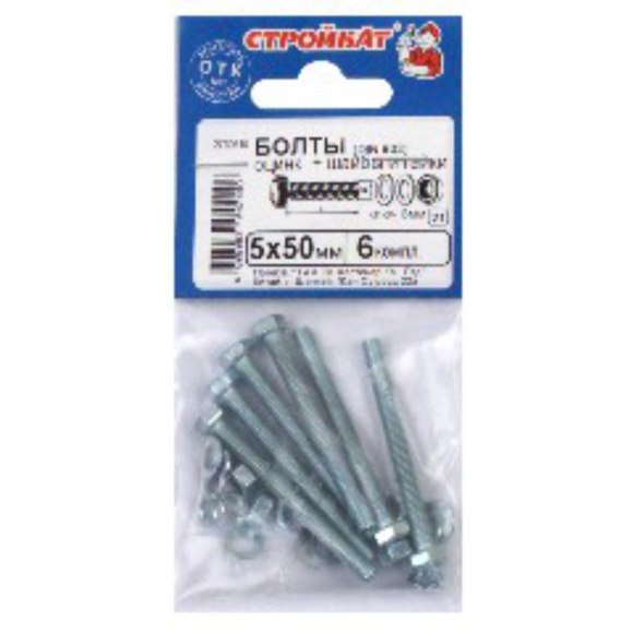 Болт DIN 933 М 5x50 с гайкой и шайбой белый цинк 6 шт,тип резьбы: полная головка: шестигранная материал: сталь покрытие: оцинкованное