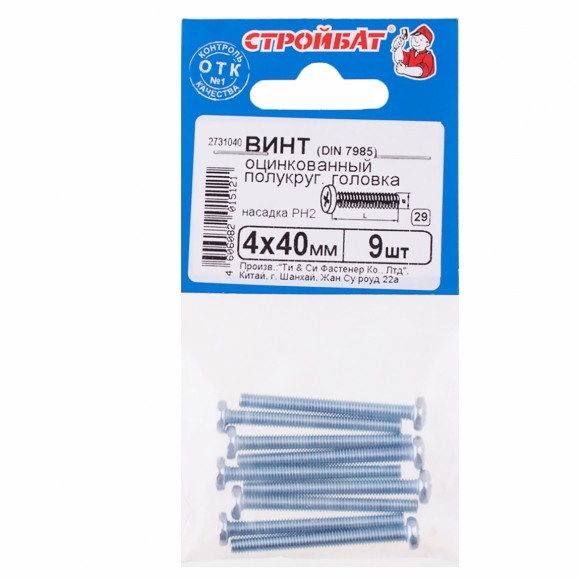 Винт DIN 7985 М4x40 белый цинк 9 шт,с полукруглой головкой, полной метрической резьбой и крестообразным шлицем