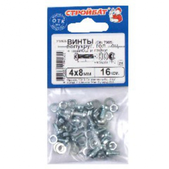 Винт СтройБат оцинк пкр DIN7985 М 5х25 с гайк и шайб 8шт