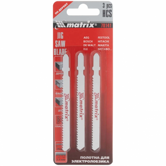 Полотна MATRIX д/электролобзика по дереву 3шт 90х4мм HCS EU- хвостовик