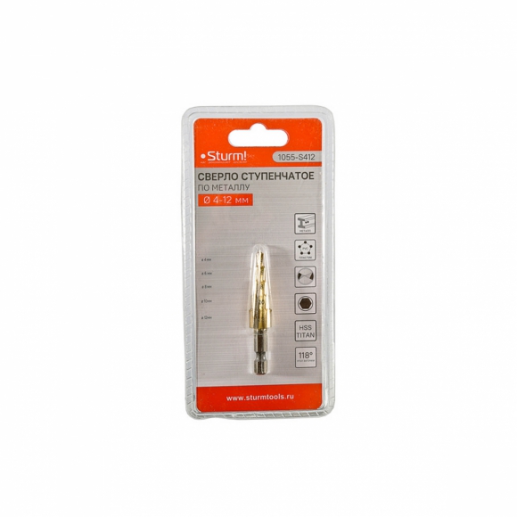 Сверло по металлу Sturm 4-12мм ступенчатое HSS+TIN прямое