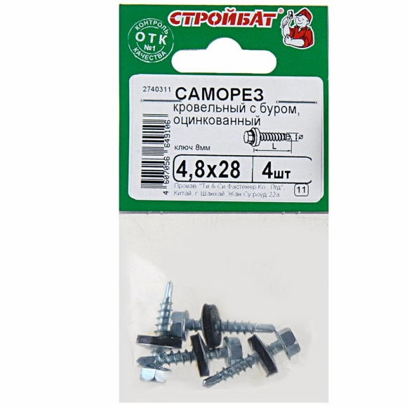 Саморезы СтройБат кровельные с буром темно-зеленый 5.5x19 250шт