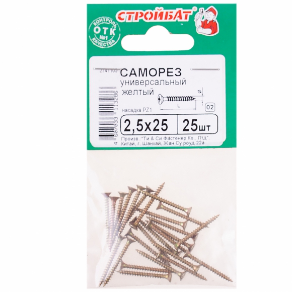 Саморезы СтройБат универсал желтый цинк 5.0x80 5шт