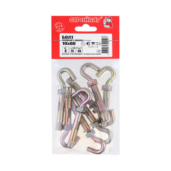 Болт СтройБат анкерный с крюком цинк 12x70 5шт 307980