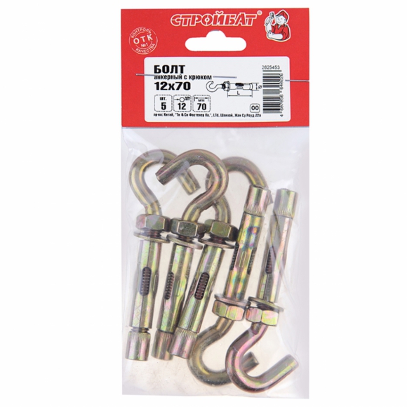 Болт СтройБат анкерный с крюком цинк 10x60 8шт 307970