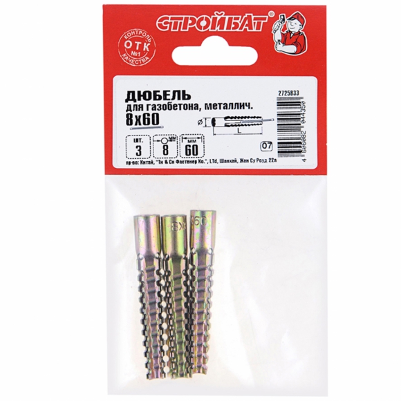 Дюбель СтройБат д/газобетона метал цинк 10x60 2шт 207031
