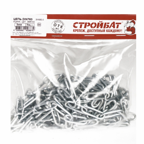 Цепь СтройБат кор звено белый цинк DIN 766 6мм 5м 311230