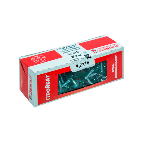 Саморезы Стройбат для тонких пластин 4,2x16 темно зеленый/белый цинк 200шт