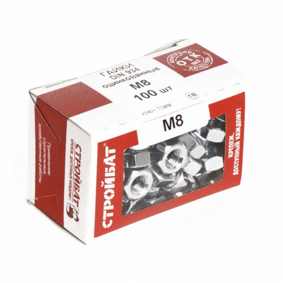 Гайка СтройБат DIN 934 М 8 бел цинк 10шт