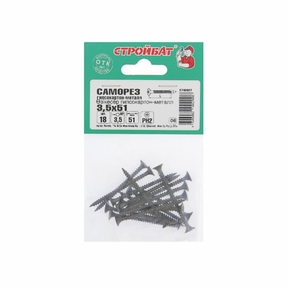 Саморезы Стройбат гипсокартон-металл 3.5x41 25шт 223371