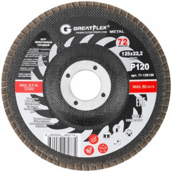 Круг Greatflex лепестковый торцевой 125x22.2мм P40