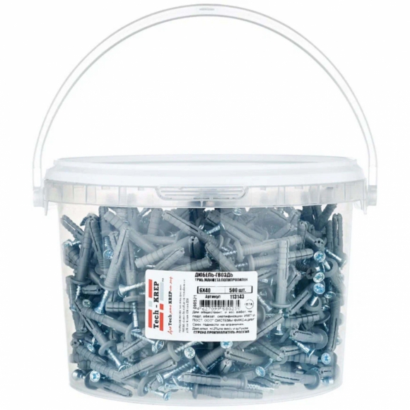 Дюбель-гвоздь Tech-Krep 6х40 гриб манжета полипропилен черный 150шт ведро