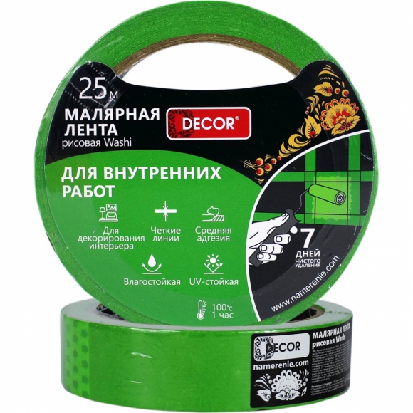 Лента малярная DЕCOR д/внутренних работ зеленая 38ммx25м