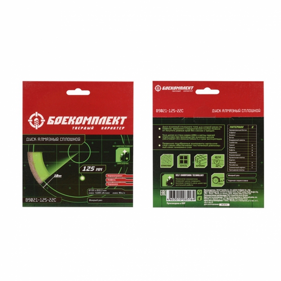 Диск алмазный БОЕКОМПЛЕКТ сплошной мокрый тонкий 125x22.23 B9021-125-22CT