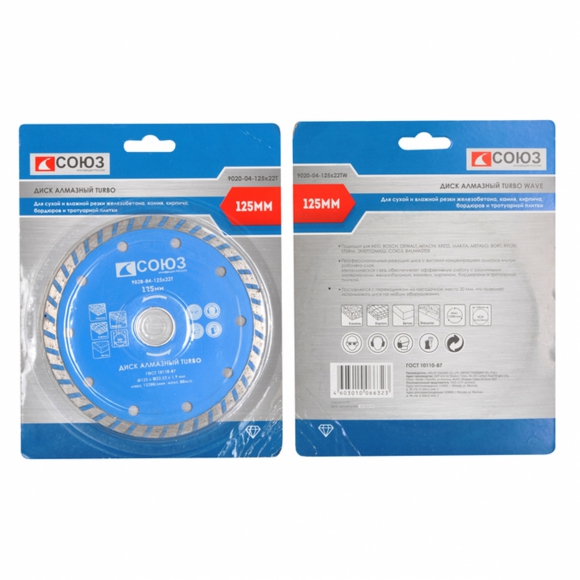 Диск алмазный БОЕКОМПЛЕКТ Turbo Волна сухой 125x22.23 B9021-125-22TW