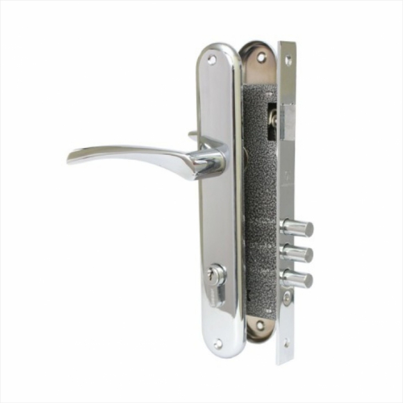 Замок врезной АЛЛЮР 0203 CP хром с ручками 10 Предназначен для установки в деревянные двери толщиной до 40мм, правого и левого открывания. Дверь может быть закрыта на защелку и открыта с помощью фалев