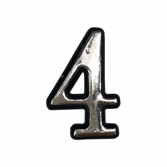 Номер АЛЛЮР дверной пластик №4 хром 3000.100.20 Цифра дверная на двусторонней клеевой основе. Материал - ЦАМ, гальваническое покрытие. Высота цифры - 45 мм.