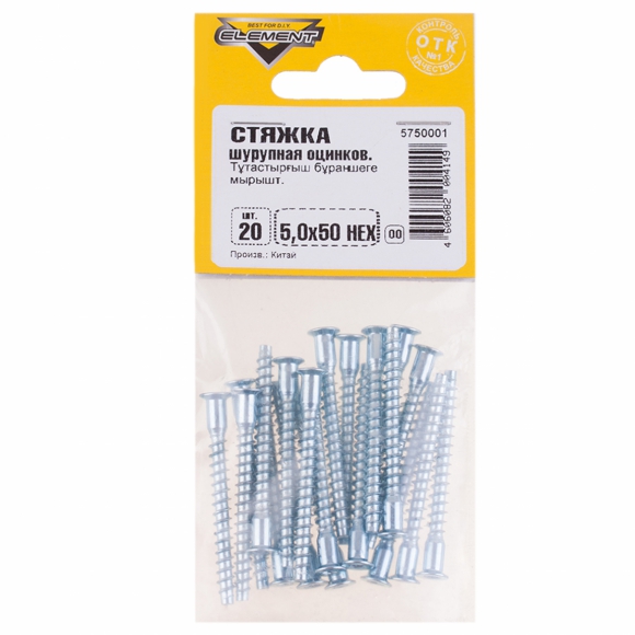 Стяжка шурупная Element HEX белый цинк 6.3x50 15шт