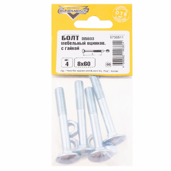 Винт мебельный Element пот белый цинк М6x50мм 4шт