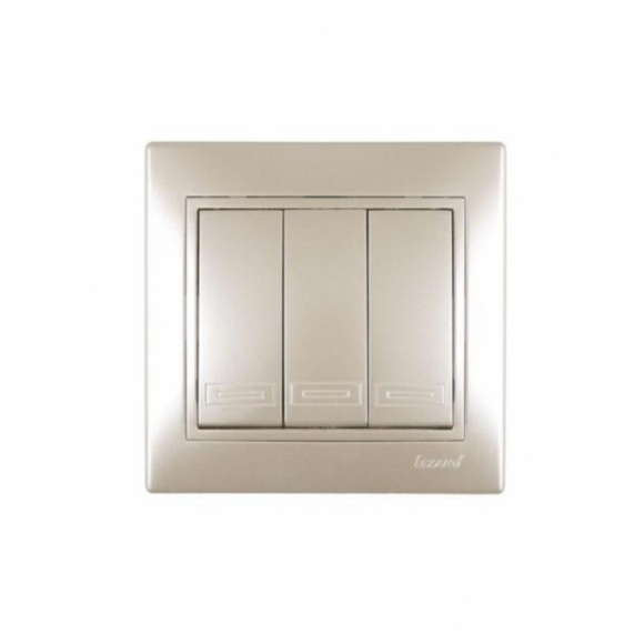 Выключатель Lezard Мира тройной жемчужно-белый перламутр со вставкой 10шт 701-3030-109, Каркас механизма - Поликарбонат,Количество кабелей - 2х2.5мм2, Комплектация - механизм в сборе, Соединения - кле