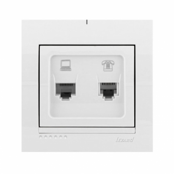 Розетка Lezard Deriy комльютерная+телефонная белый 10шт 702-0202-143, Напряжение 220..250 В,Частота тока - 50Гц, Номинальный ток - 16А, Степень защиты - IP20, Климатическое исполнение - УХЛ4, Сечение