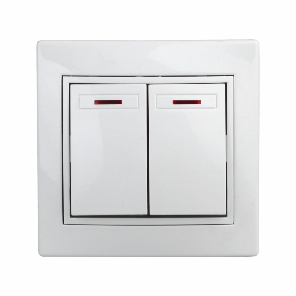 Выключатель Intro СУ Plano 10А-250В IP20 двойной с подсветкой белый, Каркас механизма - Поликарбонат,Количество кабелей - 2х2.5мм2, Комплектация - механизм в сборе, Соединения - клеммы винтовые,Класс