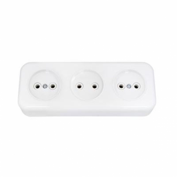 Розетка Bylectrica РА16-244 тройная наружняя без з/к, Напряжение 220..250 В,Частота тока - 50Гц, Номинальный ток - 16А, Степень защиты - IP20, Климатическое исполнение - УХЛ4, Сечение проводников от -