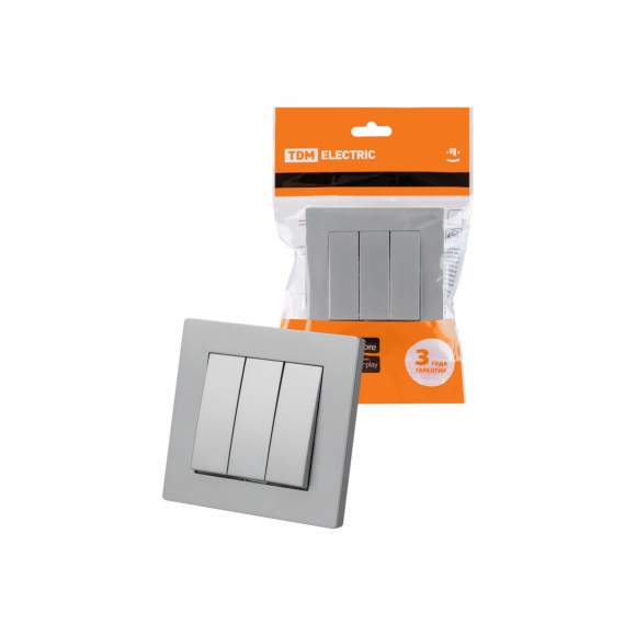 Выключатель 3 кл TDM Сенеж 10А серебр металлик /30