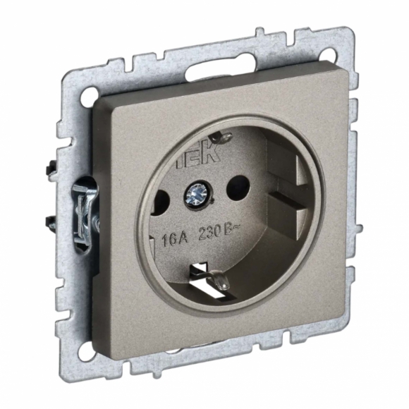Розетка IEK BRITE 1-ая с/з с защ шторками и крышкой 16А IP44 РСбш10-3-44-БрШ шампань /10