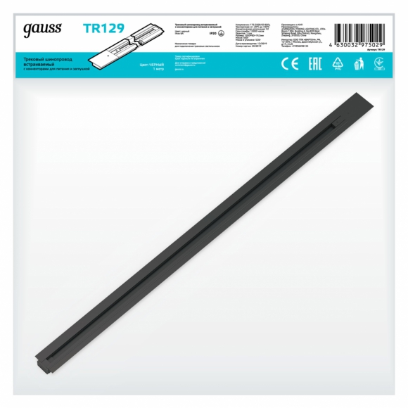 Шинопровод Gauss встраиваемый 1м черн с адаптером питания и заглушкой