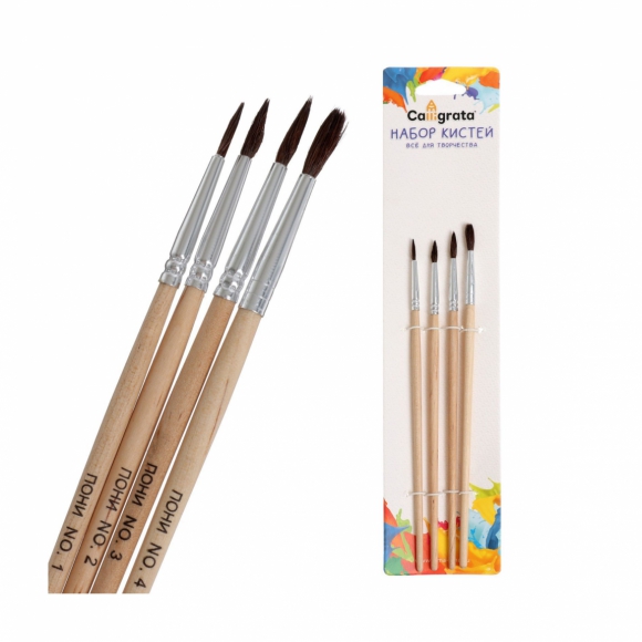 Набор кистей синтетика круг №1.2.3.4 с дерев ручками на блистере 4шт 169385 /1000