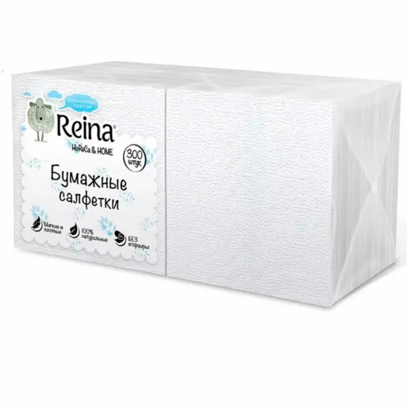 Салфетки бумажные Reina белые 1 сл 300шт/уп/15