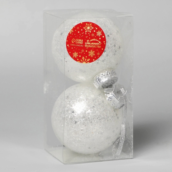 Набор шаров пластик d8см 2шт Сияние звезды серебро 9510218
