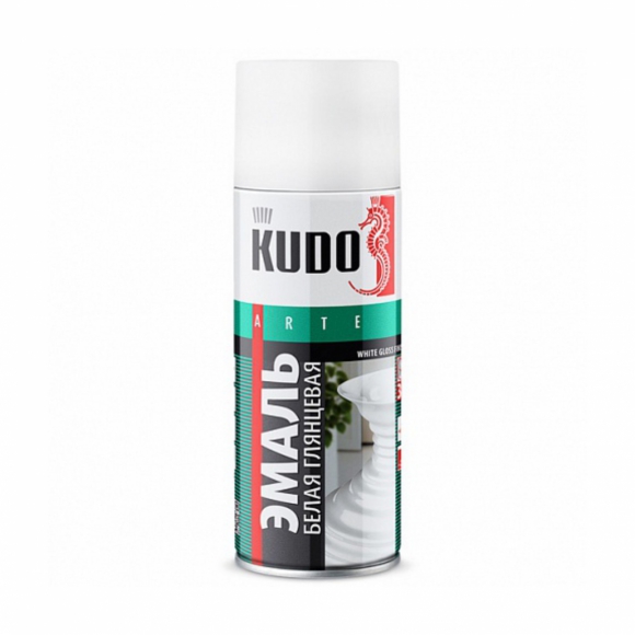 Эмаль аэрозольная KUDO универсальная для окраски поверхностей из стали,металла,камня,керамики,стекла,древесины и пластмассовых изделий белая глянцевая 270г