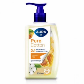 Крем-мыло AURA 2в1 д/рук и тела хлопок и мед флакон/дозатор 300мл /12