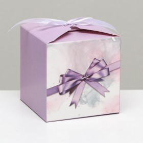 Коробка складная подушка квадратная Фиолетовый бант 10x10x10см 9545925 /14