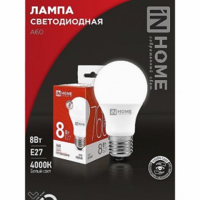 Лампа IN HOME светодиод LED-A60-VC 8Вт 230В Е27 6500К /50
