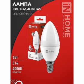 Лампа светодиод IN HOME LED-Свеча-VC 6W 230V Е27 4000К 570Лм /100